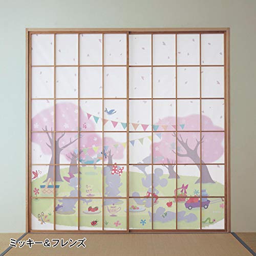 Disney ディズニー 障子紙同柄2枚セット タイプ:ミッキー&フレンズのサイズは約184cm×92cmで、主な材質は紙です。普通の障子紙の種類の物とは違っていて、ディズニーキャラクターが書かれています。障子紙にキャラクターをあしらっている種類の物は中々無いですが、全くミスマッチでは無く、それぞれの良い所が出ていて、非常に合っていて可愛いです。