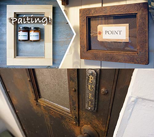 筆は塗料を伸ばすのに使えます。例えば釘が錆びて錆が流れたような感じをペイントしたいときに、筆を使って茶色い塗料をのばしてやるとリアルな加工ができますよ。他に筆での錆塗装のやり方は塗料を乗せるようにポンポンと塗っていくと錆のつぶつぶした感じが出せますね。狭い範囲や細かい部分を塗るのに筆は便利です、あとは塗料を付けていない筆で塗料をぼかしたりして錆びた状態を再現できますね。