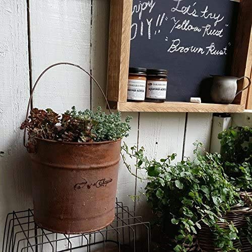 透明のビンでも錆塗装をすることで長年使っているような風合いに仕上げることができますよ。錆塗装のやり方としては同じで下地材を塗り、基本の色を塗り、最後に錆塗装を乗せていきます。実際に錆びたらどうなるかを想像しながら、角や底から錆塗装をしていくとうまくいきますよ。茶色の塗料の上に黒の塗料を乗せることで黒錆が出ているような表現ができます。
