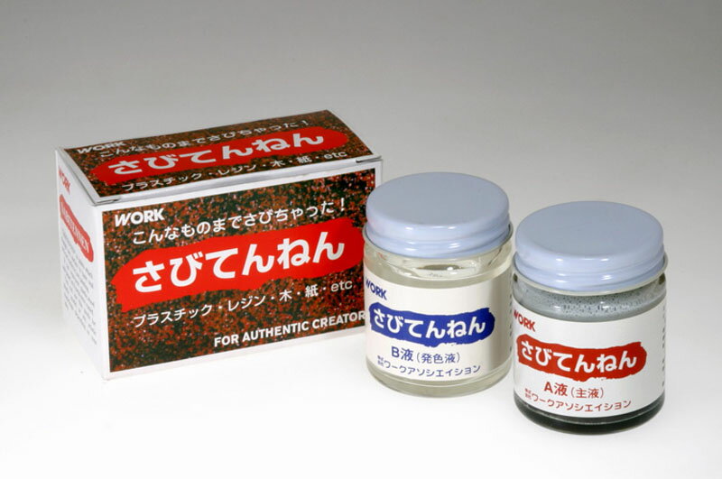 「さびてんねん」はユニークな名前の塗料ですが、錆塗装したときのリアルさはすごいです。A液とB液に分かれていて、A液金属の粉のような質感で下地を作ります。そこへB液で錆の色にペイントすればリアルな錆感が出せますよ。盛ってペイントすることができるので錆の浮き出ている感じが出しやすいですね。
