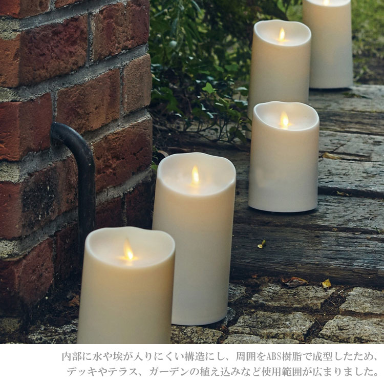 本体が本物のワックスでできたLEDキャンドルです。炎の揺らぎも本物のロウソクような、ボタン電池式のLEDキャンドルとなっています。キャンプやBBQなどのアウトドアはもちろん、お部屋のインテリアにも馴染みやすいおしゃれなデザインです。
