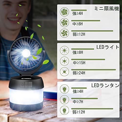 enkeeo 1台4役 LEDランタン LEDライト ミニ扇風機 モバイルバッテリー 超コスパ USB充電 3点灯モード 3段階風量 4000mAh大容量 軽量 コンパクト キャンプ 震災用品 停電対策などに SB-6068【メーカー保証】