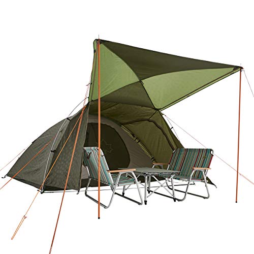 タープとテントがセットになったモデルです。タープは必ずしも必要ではありませんが初心者の方はテントと同時あったほうがいいアイテムです。アメニティドームMと同じようなテントですが、形状が違います。カマボコのような形をしているテントで素材などは基本的にはアメニティドームと同じ耐水圧1800ミリ、前室のあるテントでポールの材質もアルミ合金となっていてお得なセットです。