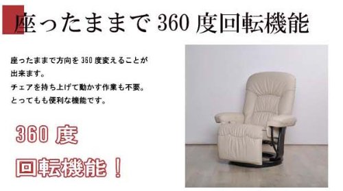 DORIS リクライニング チェア オットマン付 無段階 360度回転 肘掛け アイボリー ロベルト