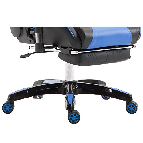 MCTECH ゲーミングチェア オフィスチェア リクライニングチェア オットマン フットレスト デスクチェア パソコンチェア ハイバックチェア レザーチェア 椅子 いす イス(ブルー)