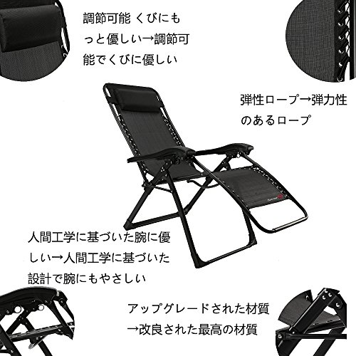 FLAMROSE 枕一体型折り畳みリラックスリクライニングチェア (ブラック) 耐荷重200kg