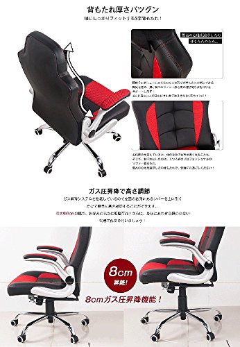(OSJ) PU メッシュオフィスチェア パソコンチェア ロッキング+リクライニング 最大160度 【ブラック&レッド】可動肘 ランバーサポート PU静音キャスター搭載