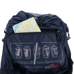 フロント部分にはトレッキングポールをかけられる便利なホルダーが付いていたり、頻繁に使用する小物類を収められるフロントポケットがありますので、出し入れも行いやすく便利です。背面部分はメッシュ仕様となっていますので、荷物携行時の不快な蒸れを軽減し、常時快適な背負い心地を保ちながら移動を行う事が出来ます。