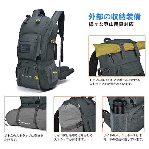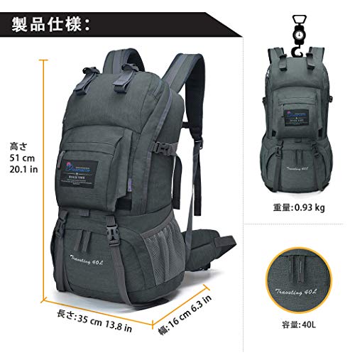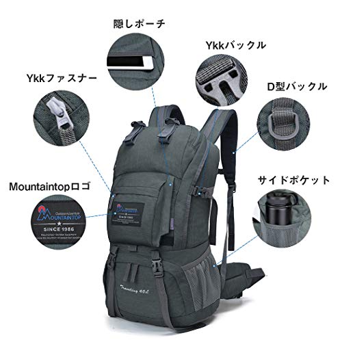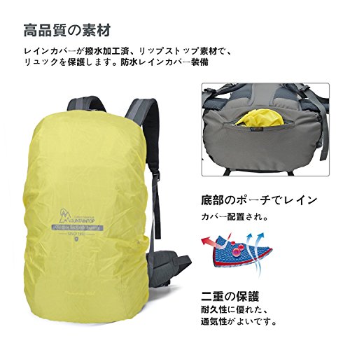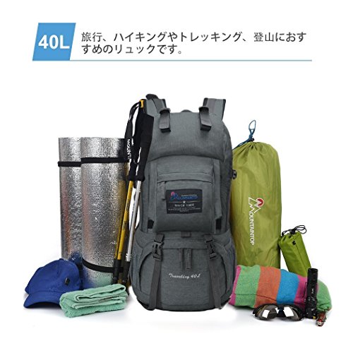 マウンテントップ(Mountaintop) アウトドア バックパック 登山リュック 40L 大容量 リュックサック 登山用バッグ ハイキングバッグ 防水 レインカバー付き (グレー40L)