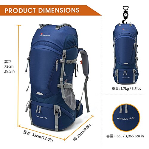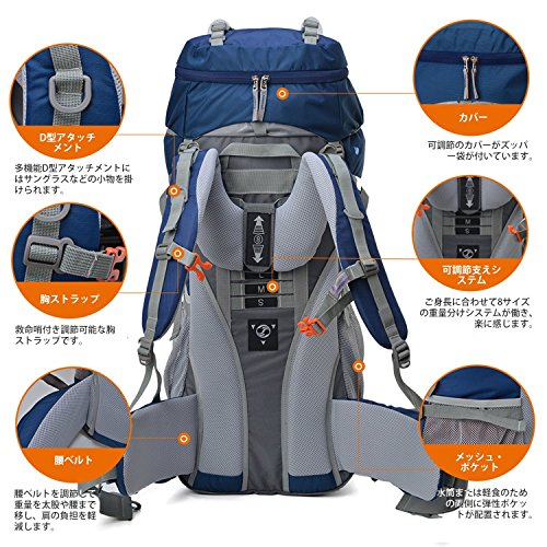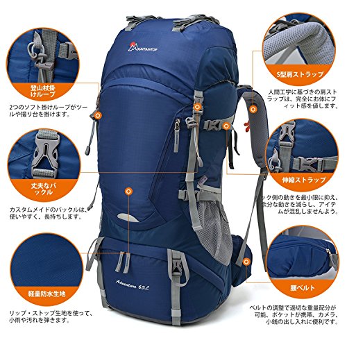 Mountaintop 55L/65L 登山バッグ 大容量 ザック 登山 リュック 防水 ハイキング バックパック キャンプ 防災 旅行用 リュックサック アウトドア バッグ 軽量 レインカバー付き (ブラック65L)