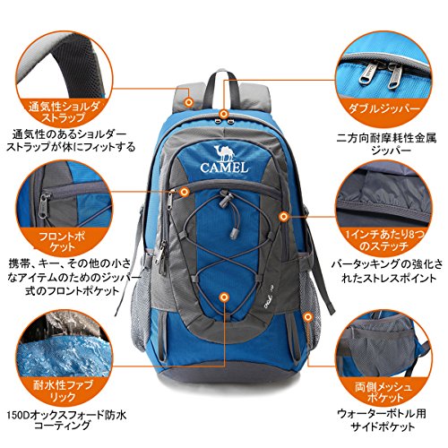 登山バッグ Camel【キャメル】ハイキング バックパック 30L リュックサック 防水 軽量 徒歩 登山 ハイキング キャンプ 旅行用 登山リュック 通気性抜群 多機能バッグ 男女兼用