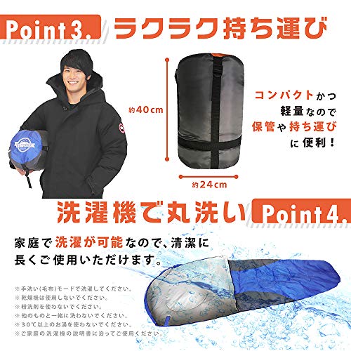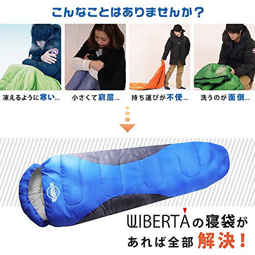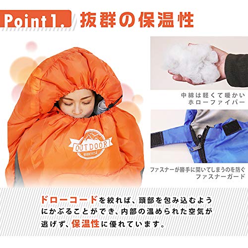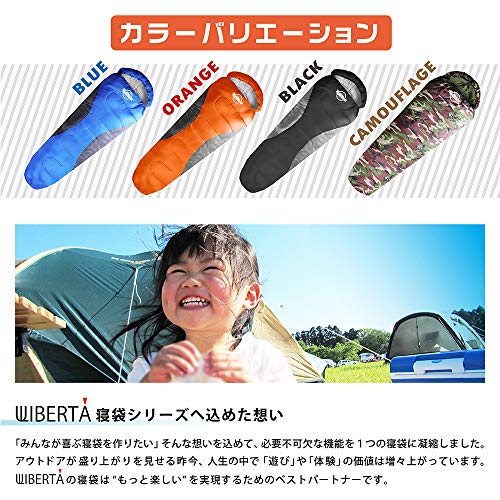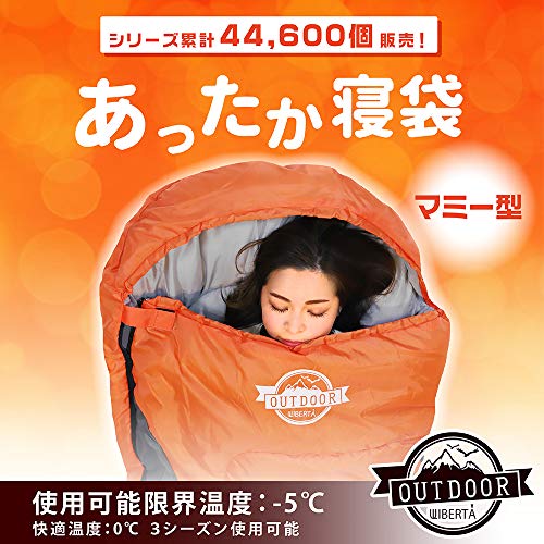WIBERTA(ウィベルタ) 寝袋 シュラフ コンパクト スリーピングバッグ 軽量 マミー型 丸洗い可能 収納袋付き 最低使用温度-5度 オレンジ