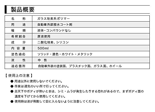 このコーティング剤はスプレータイプで、具体的にスプレーを降りかけて、タオルで拭くだけで手軽に施工を完成させる事ができます。手をあまり汚さずに扱えるので、女性にもおすすめです。価格は3819円と少し高いですが、容量は500mlで、他のコーティング剤と比較すると大容量なのでお買い得です。