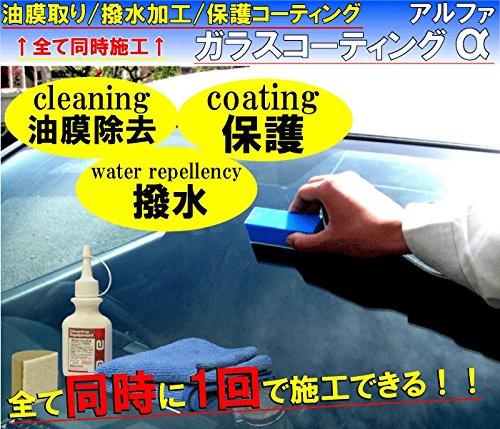 ガラス面の油膜除去 保護コーティング 撥水加工が同時にできる 『ガラスコーティングα(アルファ)』 油膜取り 洗浄 撥水コート