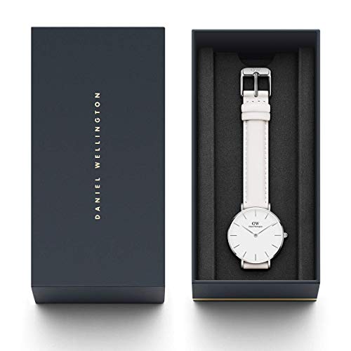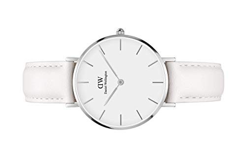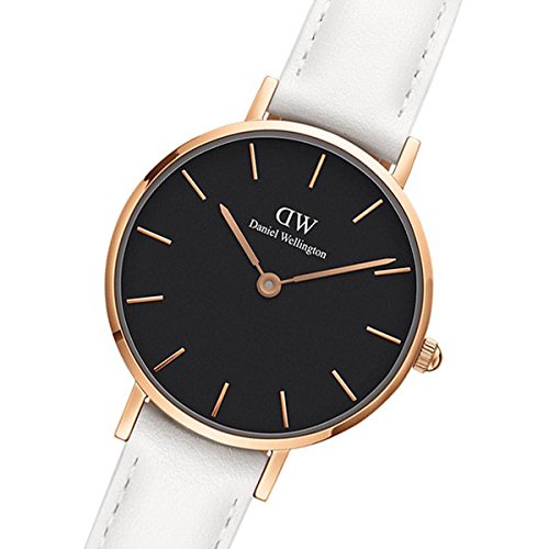 ダニエルウエリントンのクラシックシリーズ新作ペティットボンダイは、雰囲気の良いホワイトレザーバンドを装着し、ビジネスシーンから普段使いカジュアルシーンまで、様々なコーディネイトで活躍するおしゃれなレディース腕時計です。サイズは程良い28mm。肌がきれいに見えるブラックフェイス。シルバーカラーとゴールドカラーと2種類から選べます。
