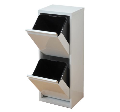 計2つのゴミ箱が装備されていてしっかりとゴミを分別して捨てる事が可能で、スリムサイズで設置場所も見つけやすいダストボックスになります。