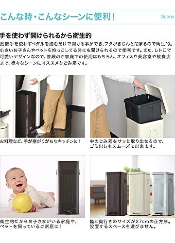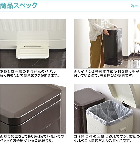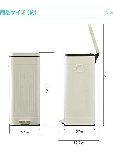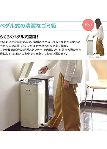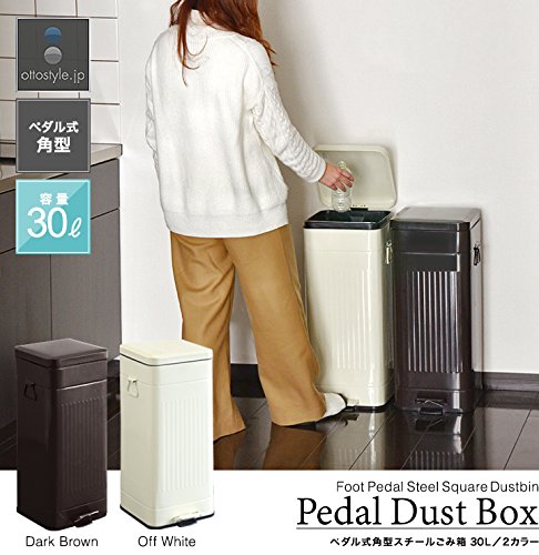 ottostyle.jp ペダル式ごみ箱 角型 30L 【オフホワイト】 ガスダンパー機能 蓋付き おしゃれ レトロ キッチン リビング 45リットルゴミ袋対応
