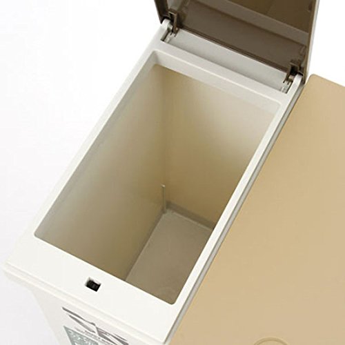 上下に一つずつゴミ箱が付いていますので、ゴミをしっかりと分別して捨てる事が出来る便利なペダル式のゴミ箱です。柔らかい雰囲気のベージューカラーを採用していますので、リビングにも馴染みやすく、正面にはロゴが書かれているアルミプレートが付いていてアクセントとなっています。