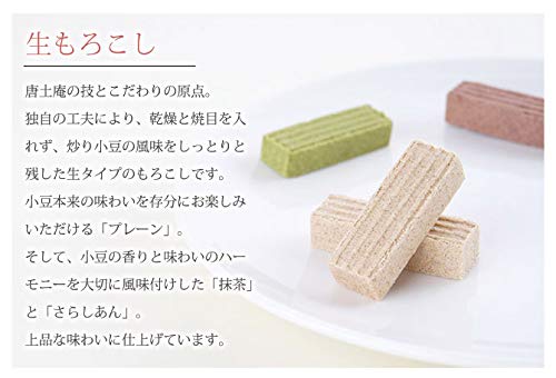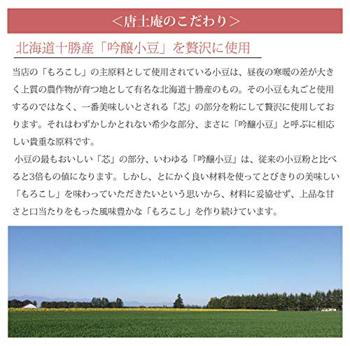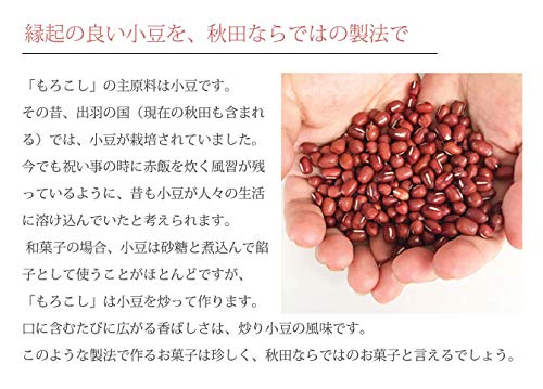 もろこしとは主原料の小豆を炒り石臼で挽き粉にしたものに砂糖を加えて型打ちして乾燥させた伝統的な有名な銘菓です。甘すぎて硬いもろこしを、唐土庵の当主がより食べやすく美味しく考案したのが名物の生もろこし。唐土庵生まれの秋田の有名なお菓子です。秋田県特産品開発コンクール知事賞を受賞した銘菓です。