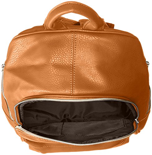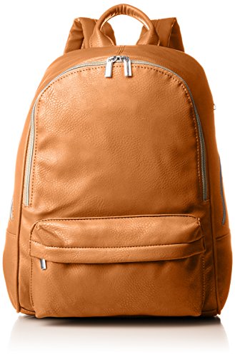 ファスナーで大きく開閉する事ができて、底マチも広い設計のバックパックなので、荷物をすっきりと収められます。茶色のレザー部分にゴールドカラーのボタンがアクセントとなっていて、きれいめで都会的な雰囲気を持つバックパックです。