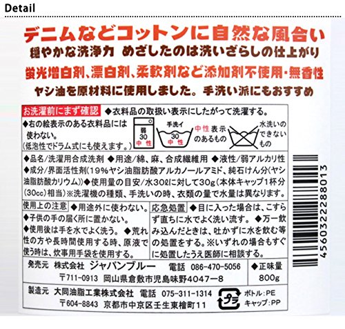| 成分 | 界面活性剤(19%ヤシ油脂肪酸アルカノールアミド) 、純石けん分(ヤシ油脂肪酸カリウム) |