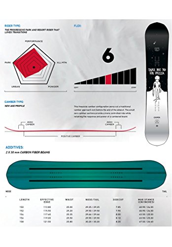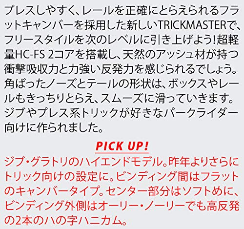 それとこのスノーボードにはカーボン・シングルバレルのホットロッドが注入されていて、反発力を高めています。普通のスノーボードよりも高く跳ねる・飛ぶ事ができて、オーリーなどもよりしやすくなります。スノーボードの技術を高めたい人には特におすすめです。