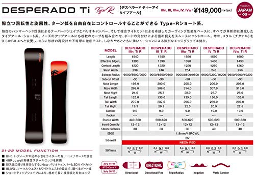 このスノーボードは2021-2022年モデルの物で、サイズは154cm、155cm、156cm、159cm160cmと5段階あります。大人の雰囲気を醸し出していて、かっこいい作りになっています。