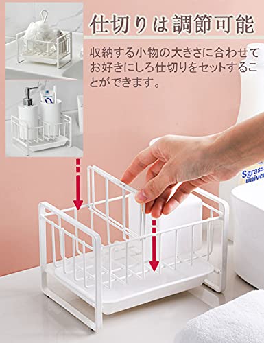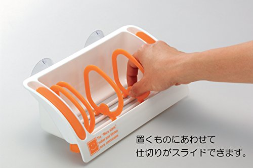台所用洗剤、スポンジ、たわしなどそれぞれの形に応じて、仕切りをスライドさせて形に合わせて収納できる人気スポンジラックになります。