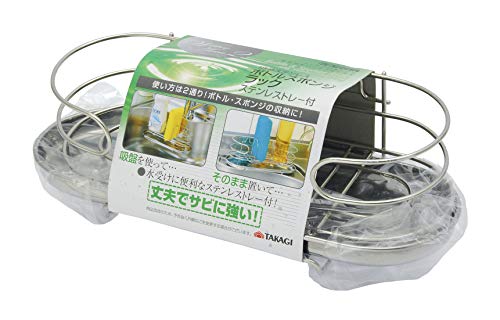 トレー付きの人気スポンジラックになります。ラックの下へとトレーが付いていますので、ラックにおいたスポンジから落ちた水滴がトレーからシンクへと落ちる構造で、水捨ても不要で便利です。