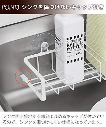 シンク付近を置き場にして設置したり、シンクの中の壁へと吸盤で取り付けて使用する事ができる人気のスポンジ&洗剤用ラックになります。
