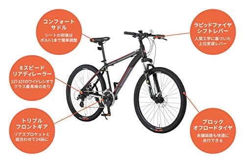 かっこいいブラックでシンプルなデザインは、年齢や性別を問わず使いやすいといえるでしょう。街乗りから通勤通学時に至るまで、様々な環境下にて活躍してくれるMTBです。