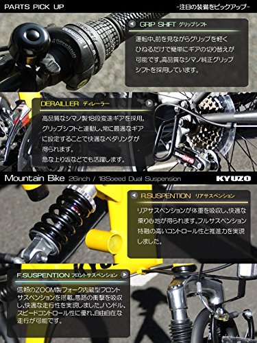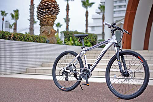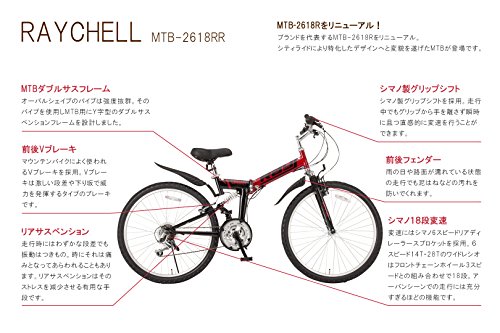 出典: https://www.amazon.co.jp/Raychell-%E3%83%9E%E3%82%A6%E3%83%B3%E3%83%86%E3%83%B3%E3%83%90%E3%82%A4%E3%82%AF-MTB-2618RR-%E5%89%8D%E5%BE%8C%E3%82%B5%E3%82%B9%E3%83%9A%E3%83%B3%E3%82%B7%E3%83%A7%E3%83%B3-%E3%83%A1%E3%83%BC%E3%82%AB%E3%83%BC%E4%BF%9D%E8%A8%BC1%E5%B9%B4/dp/B00QN7QJXG/ref=sr_1_28_sspa?ie=UTF8&qid=1537923721&sr=8-28-spons&keywords=%E3%83%9E%E3%82%A6%E3%83%B3%E3%83%86%E3%83%B3%E3%83%90%E3%82%A4%E3%82%AF%E3%80%80%E3%83%95%E3%83%AB%E3%82%B5%E3%82%B9%E3%83%9A%E3%83%B3%E3%82%B7%E3%83%A7%E3%83%B3&psc=1前後にVブレーキを採用しているMTBなので、下り坂でも優れた制動力を発揮して安全に止まる事が可能です。シマノ製の18段ギアを搭載し、シマノの新型グリップシフトにより手元で直感的に操作できます。更に変速レベルを一目で確認できる表示方式を採用しているのも特徴です。