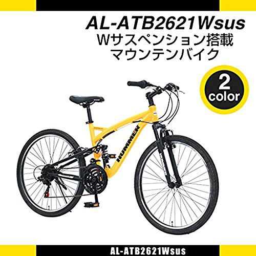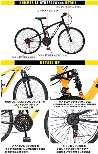 出典: https://www.amazon.co.jp/HUMMER-%E3%83%8F%E3%83%9E%E3%83%BC-AL-ATB2621Wsus-%E5%89%8D%E5%BE%8CV%E3%83%96%E3%83%AC%E3%83%BC%E3%82%AD%E3%82%B7%E3%82%B9%E3%83%86%E3%83%A0-13192-0799/dp/B074PXWDYR/ref=sr_1_2?ie=UTF8&qid=1537923849&sr=8-2&keywords=%E3%83%9E%E3%82%A6%E3%83%B3%E3%83%86%E3%83%B3%E3%83%90%E3%82%A4%E3%82%AF%E3%80%80%E3%83%95%E3%83%AB%E3%82%B5%E3%82%B9%E3%83%9A%E3%83%B3%E3%82%B7%E3%83%A7%E3%83%B3&refinements=p_89%3A%E3%83%8F%E3%83%9E%E3%83%BC%28HUMMER%29街乗りや通勤時はもちろんの事、山下りのダウンヒルを行う際にも活躍してくれるマウンテンバイク。イエローだけでなくシックな印象のブラックカラーもあり、お好きな方から選べるおしゃれでかっこいいマウンテンバイクです。