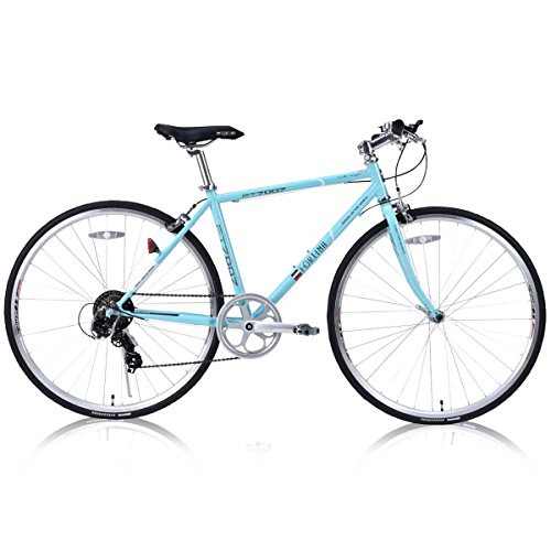 シマノ製のサムシフターを装備していて、7段階まで変速チェンジを行えますので、シーンに応じてスピード感溢れる走りを体感できます。街乗りや自転車でのツーリングなど幅広い環境下で活躍してくれる、激安ながらも機能性に優れたコスパの高いかっこいいクロスバイクになります。