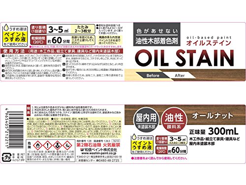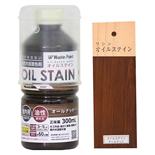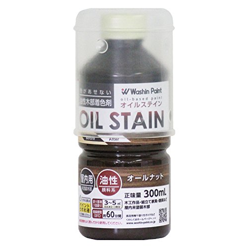 水性ステインも取り扱っている「和信ペイント」のオイルステインです。色は6種類しかありませんが、最大容量が3Lもあり、大規模なDIYに向いています。もちろん300mlと少量もありますので、DIYの大きさに合わせて塗り方を変えることができます。