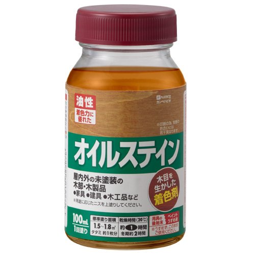 最もポピュラーなオイルステインの一つです。色も複数種類あるだけではなく、様々な容量がありますので、用途によって使い分けることができます。大容量を購入するのではなく、DIYごとに少量購入するようにすれば管理もしやすくなるでしょう。