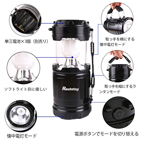 LEDランタン 懐中電灯2モード切替 明るい 携帯型 ポータブル テントライト 防水仕様 防災対策 登山 夜釣り ハイキング アウトドア キャンプ用 (2個セット)