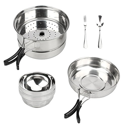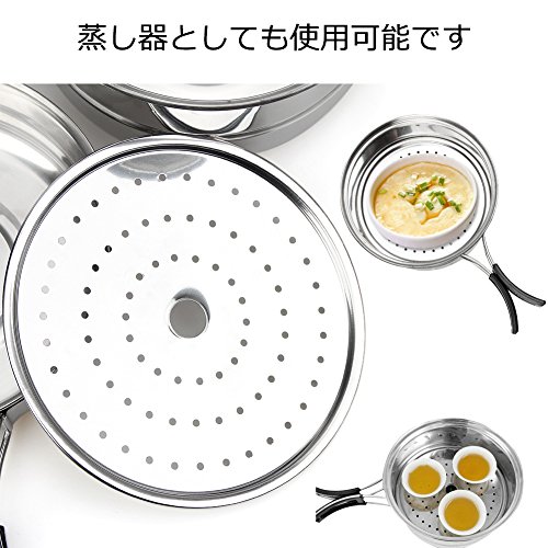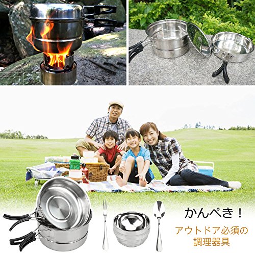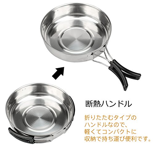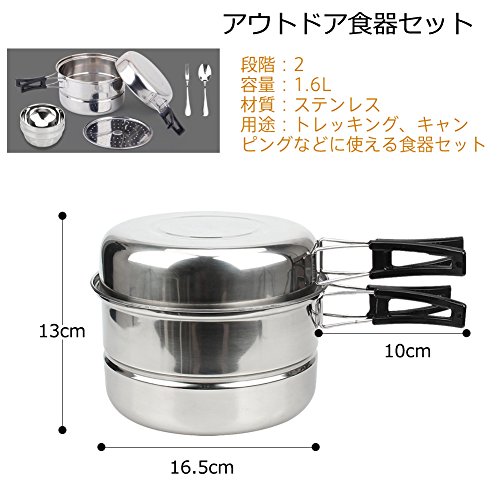 この食器セットにはフライパン、鍋、ボウル、フォーク、スプーンの5つが付いています。料理をする時に必要な物を簡単に準備できて、人気が高いです。炒め物や煮物だけではなく、スープやご飯も作る事が可能で、本当に万能な働きをしてくれて、とても役に立ちます。重量は530gで、非常に軽量になっていて、女子も使いやすいです。