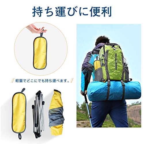 この椅子のサイズは50cm×58cm×66cmで、重量は0.94kgです。耐荷重は120kgで、色はスカイブルー、イエロー、レッド、オレンジの4種類あります。特にキャンプ場でご飯を食べる時やゆっくりとしたい時に立ちます。組み立ては手順が少なく、非常に簡単になっていて、キャンプ初心者や女子も使いやすくて人気です。