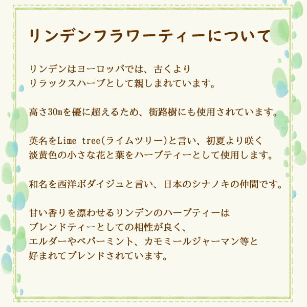 リンデンは香りもとてもよいので、ぜひリンデンを生活の中に取り入れて、心も体も元気になってくださいね!