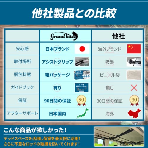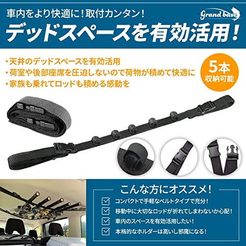 安価で簡単に装着できるロッドホルダーを探している人には、GRANDBASEのロッドホルダーがおすすめです。ロッドホルダーの取り付けは、アシストグリップベルト2本での固定式で、付属のバックルで簡単に装着できます。ベルトの幅は75~105㎝の間で調整できるため、ほとんどの車に設置できるのも大きな魅力です。