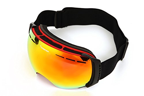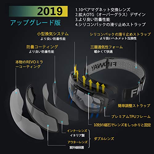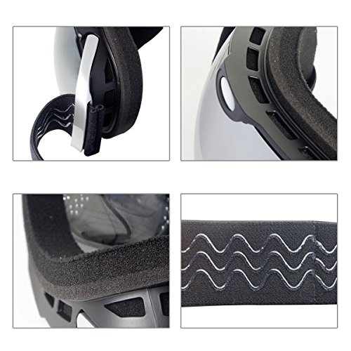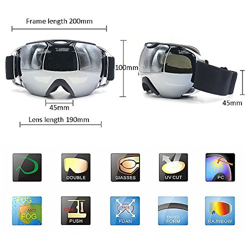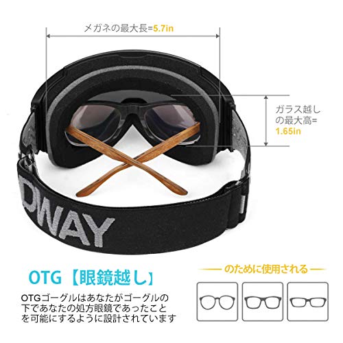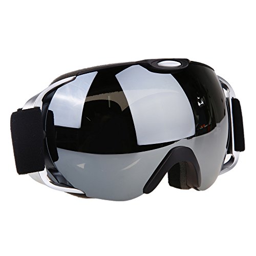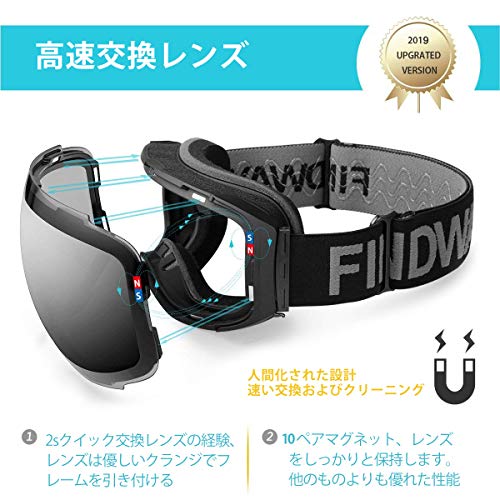 スキーゴーグル, Findway スノーボード ゴーグル レディース メンズ めがね対応 くもり止め スノボゴーグル 球面レンズ スキー用ゴーグル ダブルレンズ ヘルメット対応 フレームレス ゴーグル (シルバー/黒い)