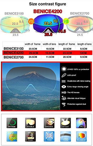 BENICE スキーゴーグル スノーボードゴーグル 曇り止め メガネ対応 紫外線防止 軽量 高品質 UVカット メンズ・レディース
