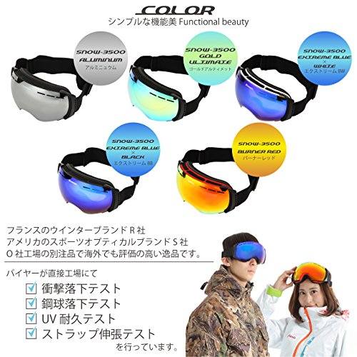 このゴーグルは鋼球落下テスト、衝撃落下テスト、UV耐久テスト、ストラップ伸張テストの4つのテストを行い、全てクリアしています。他のメーカー・ブランドのゴーグルよりも高い耐久性や耐衝撃性、伸張性を持っていて、紫外線にも強く、高い評価・評判を得ています。スノボをする時にはもってこいのゴーグルで、安心して滑る事ができます。価格は約11000円で、安いとは言えないですが、購入してみる価値はあります。