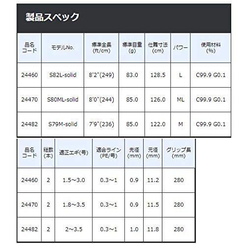 春のアオリイカエギングを中心に楽しんでいる方には、パワーも十分のS79Mがおすすめ。先径、元径ともライトなモデルより太さがありますが、長さが短い分軽量でS80MLと同じ85gに設定されています。ややショートな79のセッティングは、飛距離よりもアクションレスポンスを優先したセッティング。ボートからキャスティングするエギングにもピッタリのパワーセッティングです。