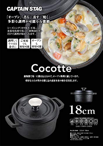 人気アウトドアブランドキャプテンスタッグの鋳鉄製ココット鍋です。キャプテンスタッグのココットは、サイズが10cm〜22cmと3種類用意。直火はもちろんIHやオーブンにも対応しているので家庭でも使えます。