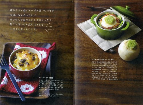 こちらはココット皿を使ったちょっとした1品料理がメインです。ココット皿は収納スペースもとらず、耐熱性なのでそのまま電子レンジやオーブンで料理できるのが魅力。その魅力を余すとこなく発揮できる使い方満載のレシピ本です。毎日お弁当を作っている方にもおすすめのレシピ本です。