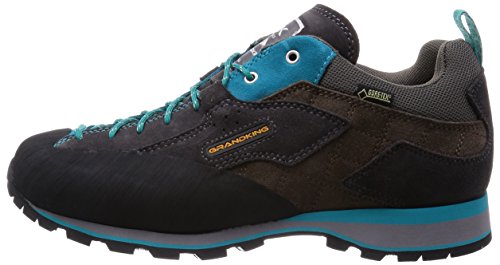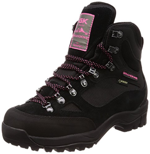 ブラックカラーをメインにして、シューレースやグランドキングのブランドロゴなどに程よくピンクがあしらわれており、女性らしさを伺わせているおしゃれなトレッキングシューズです。