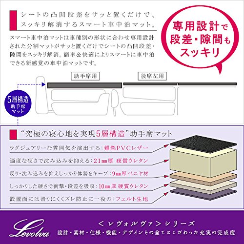 純正オプションは高額であるため、利用頻度を考えるとなかなか手が出せないかも知れませんが、比較的安価に購入できる車中泊キットもあります。Levolvaスマート車中泊マットは、段差を解消するクッションと運転席側と助手席側に分かれたマットがセットになっており、シートアレンジに合わせた使い方が出来ます。