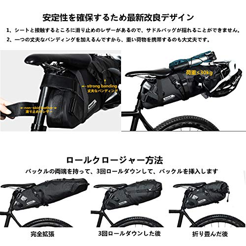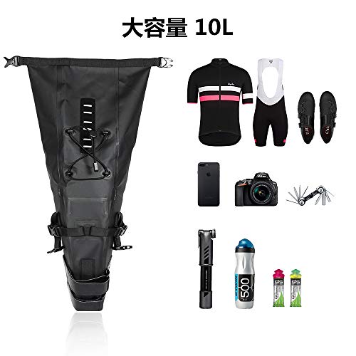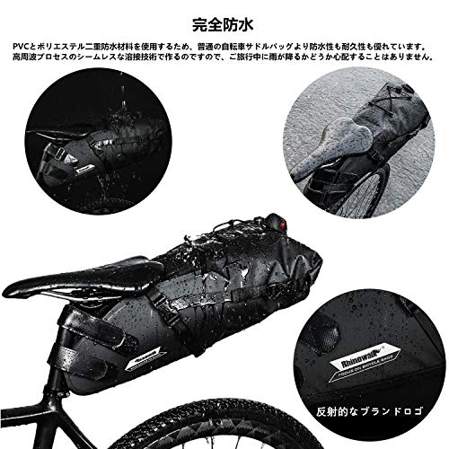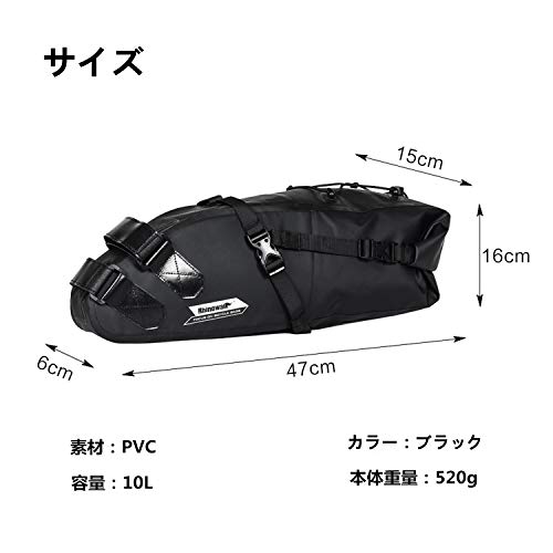 Rhinowalk サドルバッグ ロードバイク 防水 自転車 サドルバック 大容量 10L PVC加工 (ブラック 改良版)